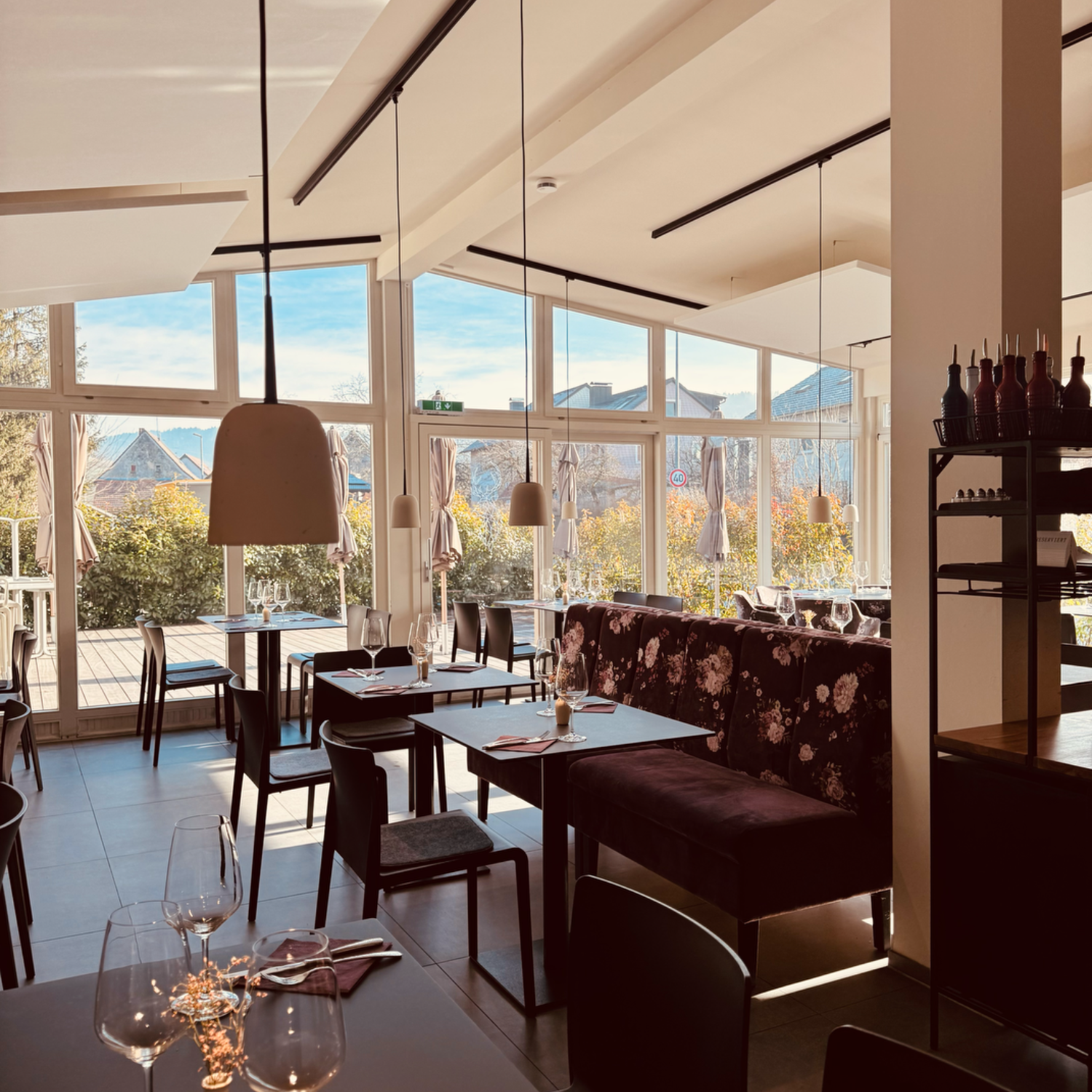 Unser Wintergarten bietet Ihnen eine moderne, helle Atmosphäre, die sich perfekt für entspannte Stunden eignet. Die großzügigen Fenster sorgen für viel Tageslicht und schaffen eine angenehme, ruhige Umgebung, in der Sie sich rundum wohlfühlen können.