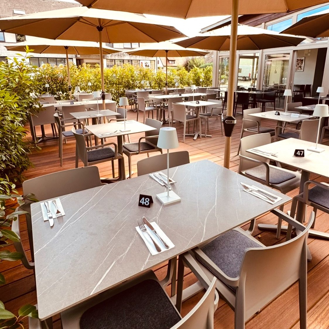 Genießen Sie den Sommer in vollen Zügen auf unserer neu gestalteten Terrasse! Hier erwartet Sie ein großzügiger, einladender Platz, ideal für gesellige Stunden mit Freunden, Familie oder Kollegen. Umgeben von grünen Pflanzen und der erfrischenden Außenluft, können Sie sich zurücklehnen und den Moment genießen.